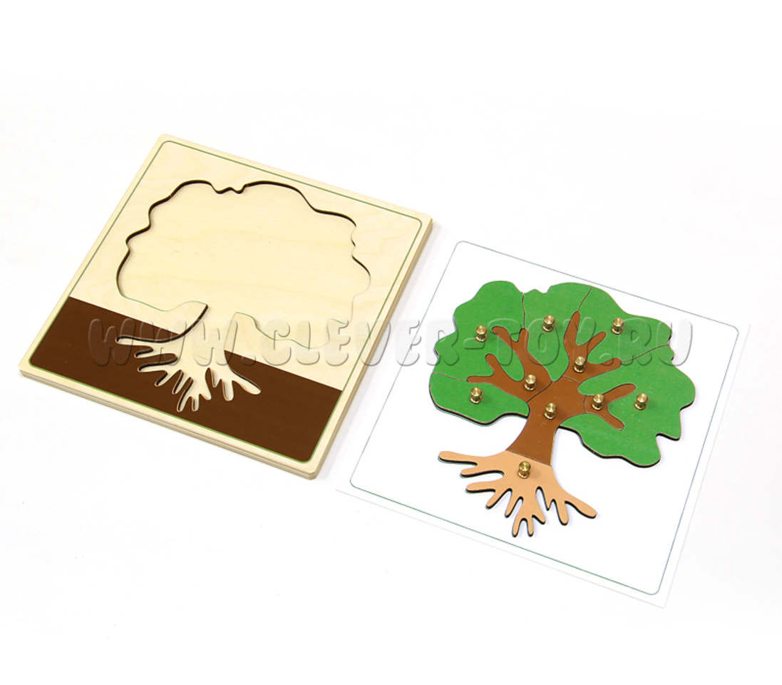Знакомство со строением дерева путем составления целого из частей и проговаривания их названий способствует развитию речи, увеличению словарного запаса и формированию восприятия формы.