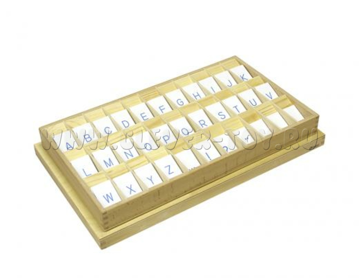 • 3.06.4 Англ. подвижный деревянный алфавит в коробке - печатные буквы. 5/10 шт.