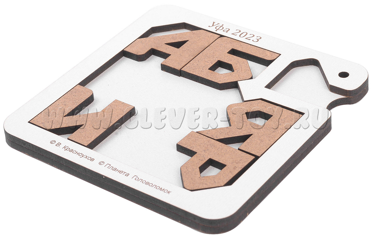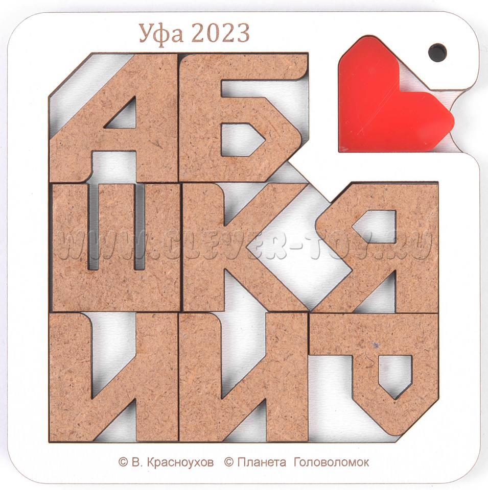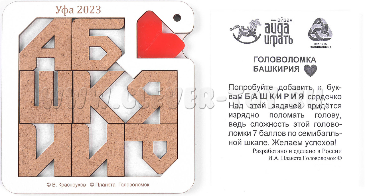 Головоломка "Башкирия". Попробуйте к буквам Б А Ш К И Р И Я добавить сердечко. Над задачей придётся поломать голову, вель сложность головоломки 7 баллов! Размер головоломки: 92*92*5 мм.