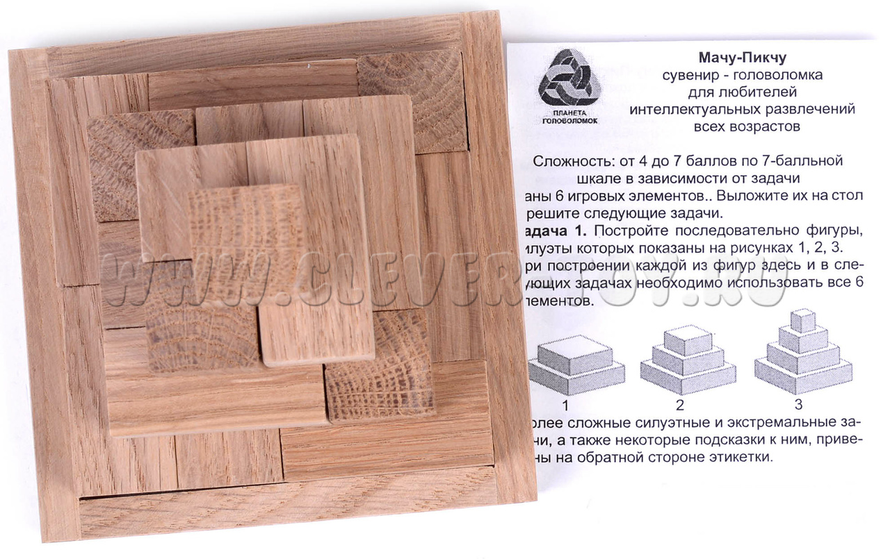 Головоломка состоит из 6 элементов разной формы, которые нужно правильно расположить, чтобы собрать пирамиду. Мачу-Пикчу будет хорошим выбором для людей всех возрастов, желающих потренировать свой ум и развить свой интеллект.