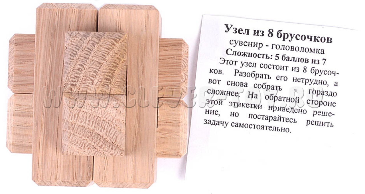 “Узел из 8 брусочков” или, если кратко, “Узел-8” – интересная головоломка, которая привлекает своей интересной формой и больше напоминает магический артефакт.