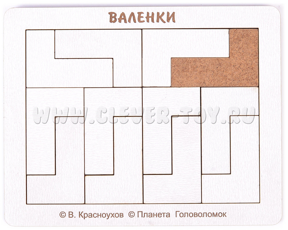 Головоломка "Валенки" состоит из прямоугольной коробочки и игровых элементов.
