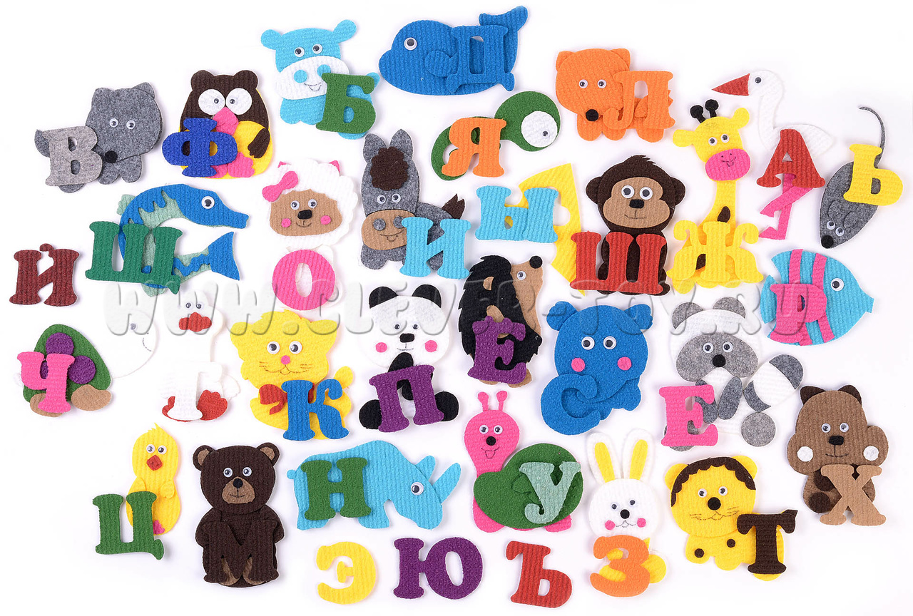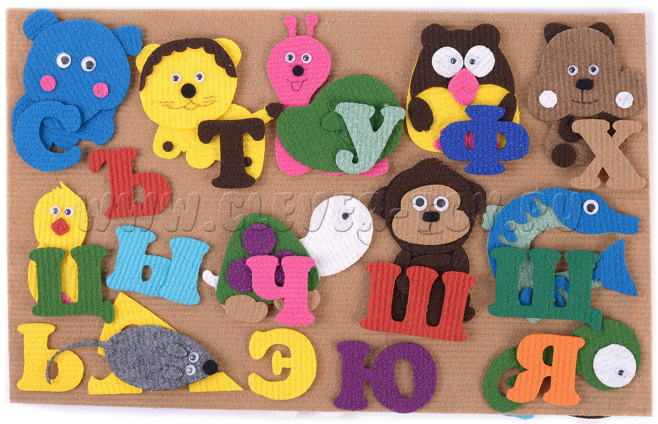 Реалистичные фигурки из современного прочного яркого материала - ковролина - помогут вашему малышу легко усвоить алфавит. В паре с каждой буквой русского алфавита в наборе есть фигурки животных, рыб и птиц, названия которых начинаются на эту букву.