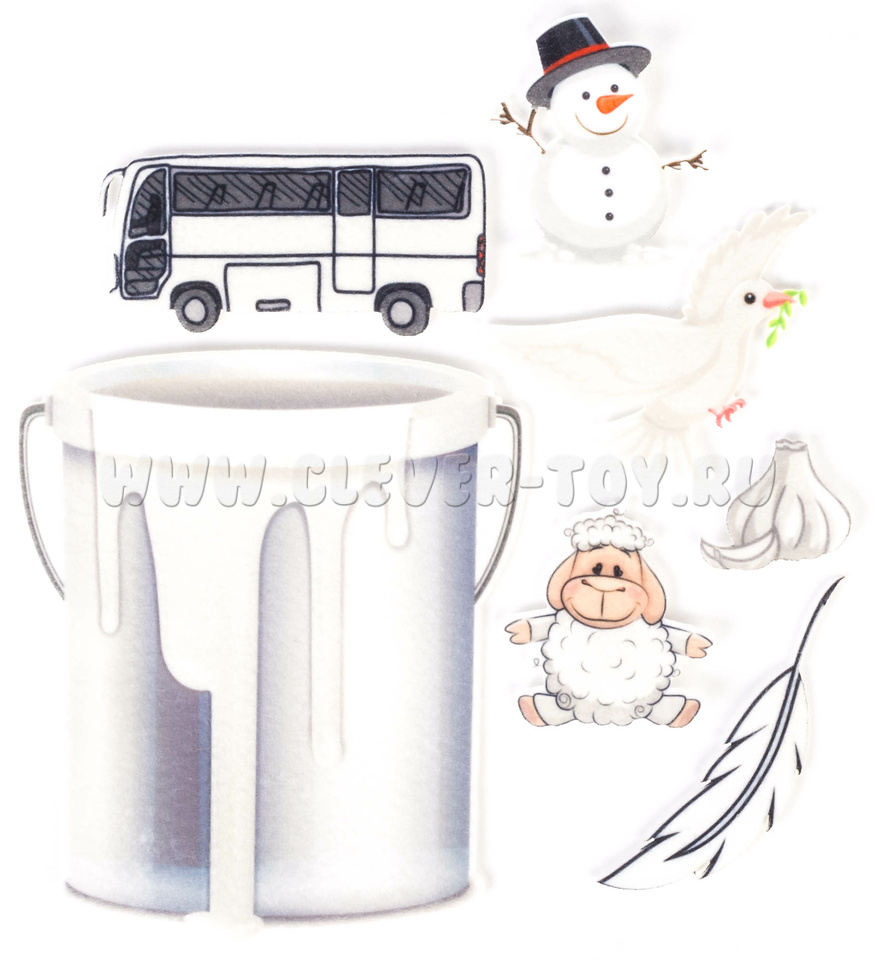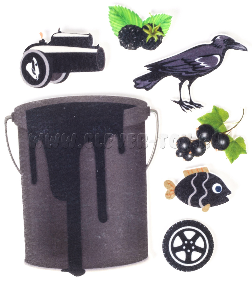 - элементы на липучках с изоброжением шоколада, винограда, автомобилей, снеговика, мороженого, одежды, ягод и т.д..