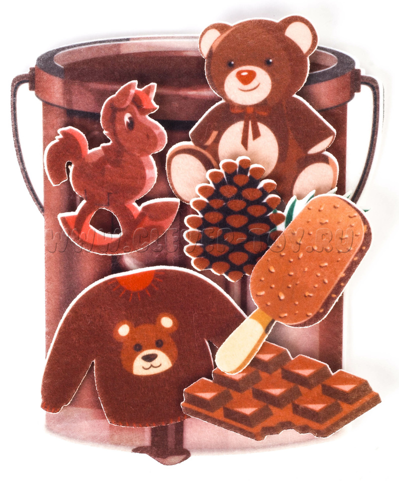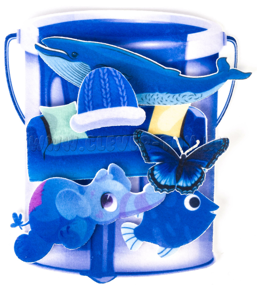 - 12 фетровых фигуры с изображением разноцветных ведёрок,