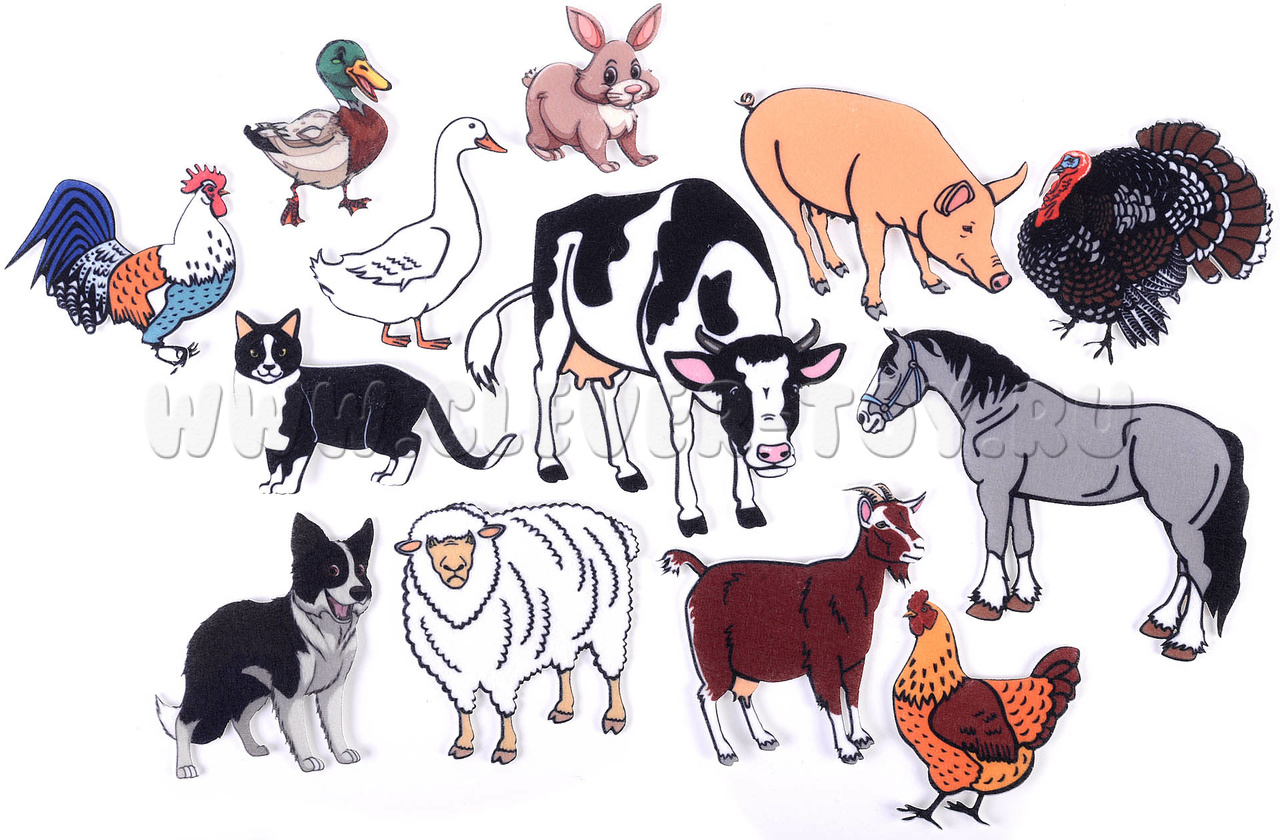 • 13 игровых элементов с изображением лошади, индюка, коровы, кролика, кота, собаки, овцы, свиньи, утки, курицы, петуха, гуся, козы.