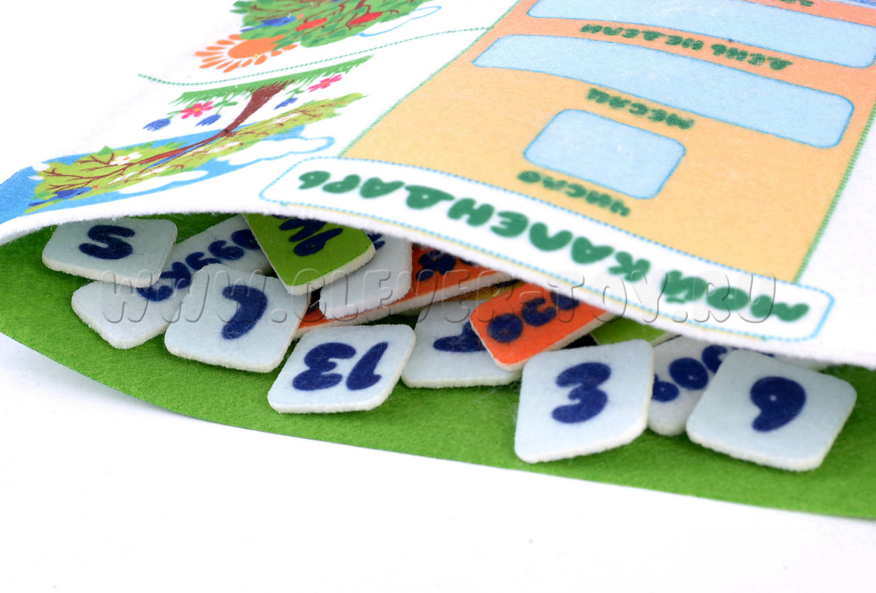 • игровые элементы: числа от 1 до 31, элементы с названиями дней недели, месяцев, времён года и т.д.