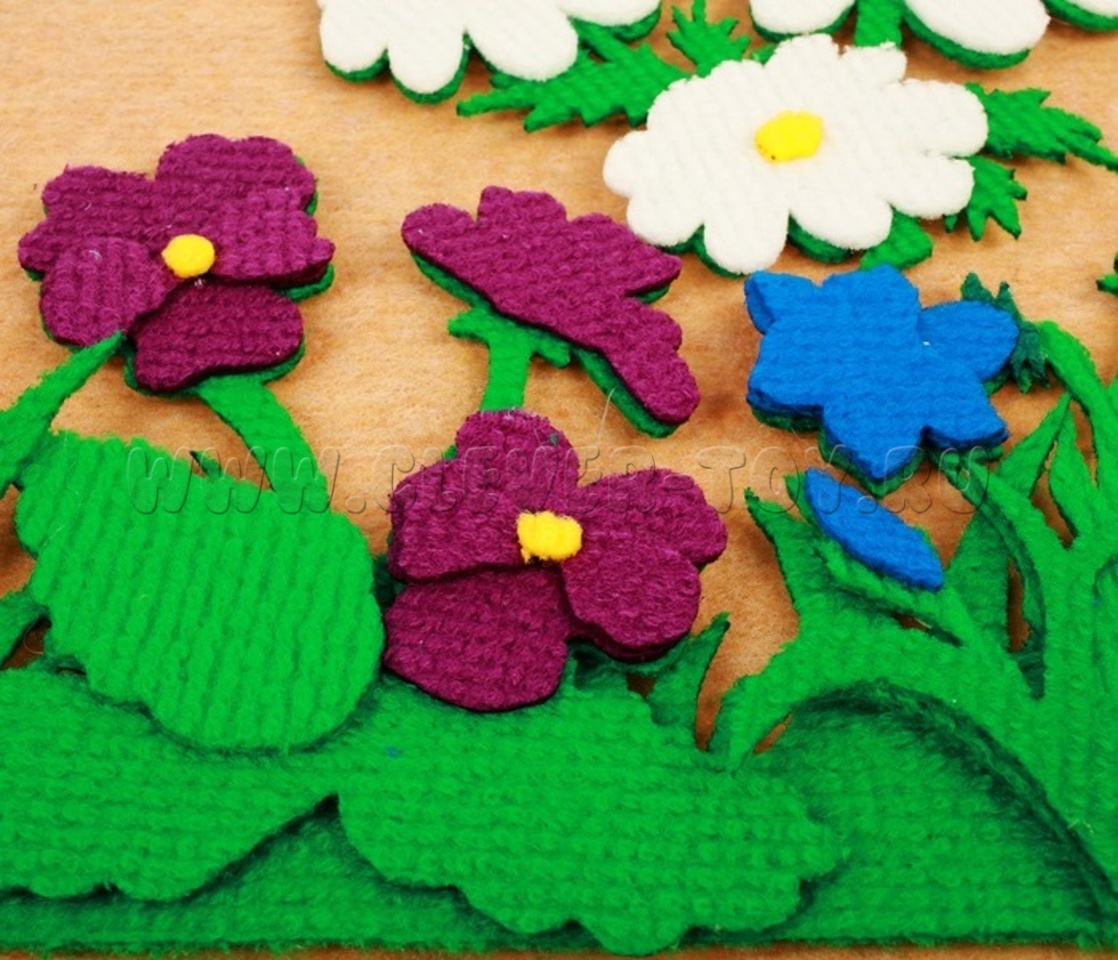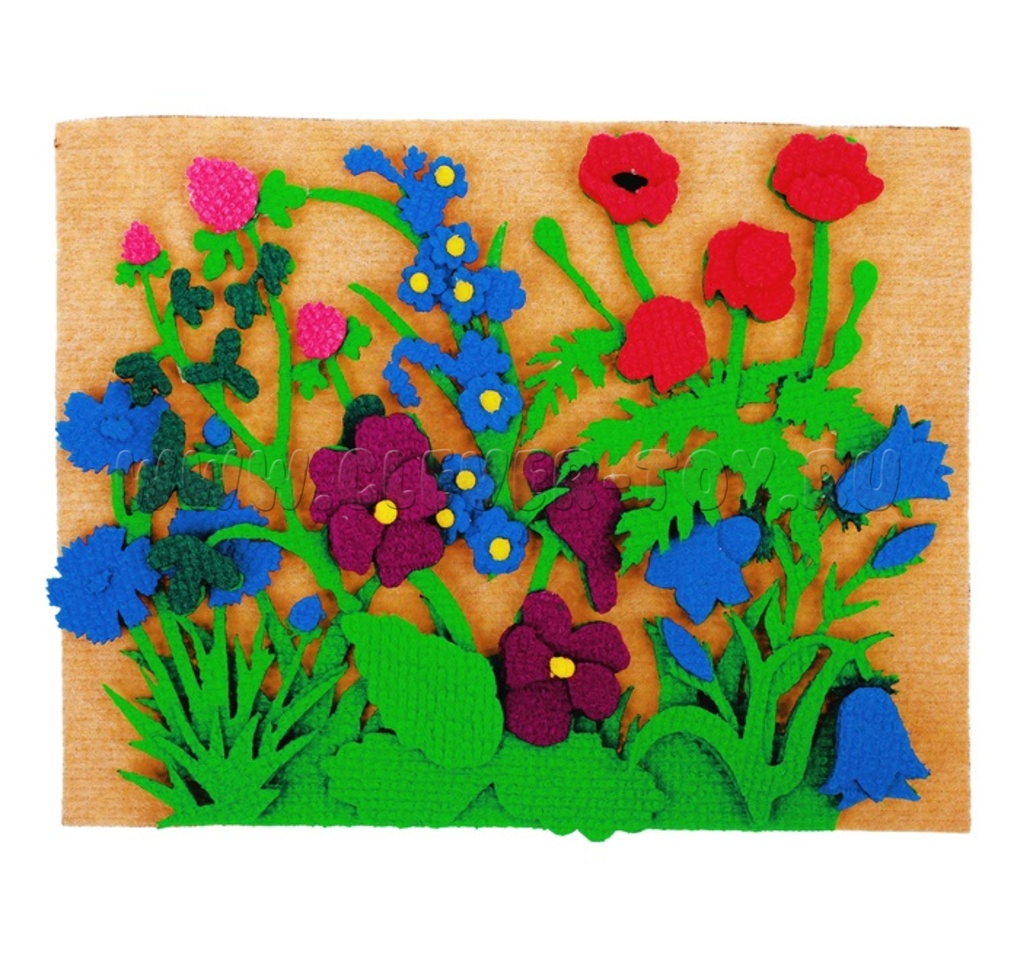 • 8 разнообразных видов луговых цветов, в том числе: мак, колокольчик, ромашка, василёк, лютики, фиалки вместе со стеблями, листьями и травой;
