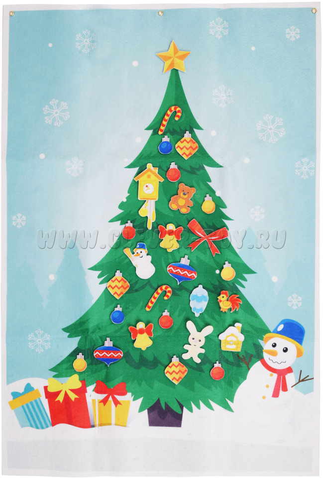 • большое игровое панно с нанесённым изображением ёлки, снеговика, и подарков под ёлкой;