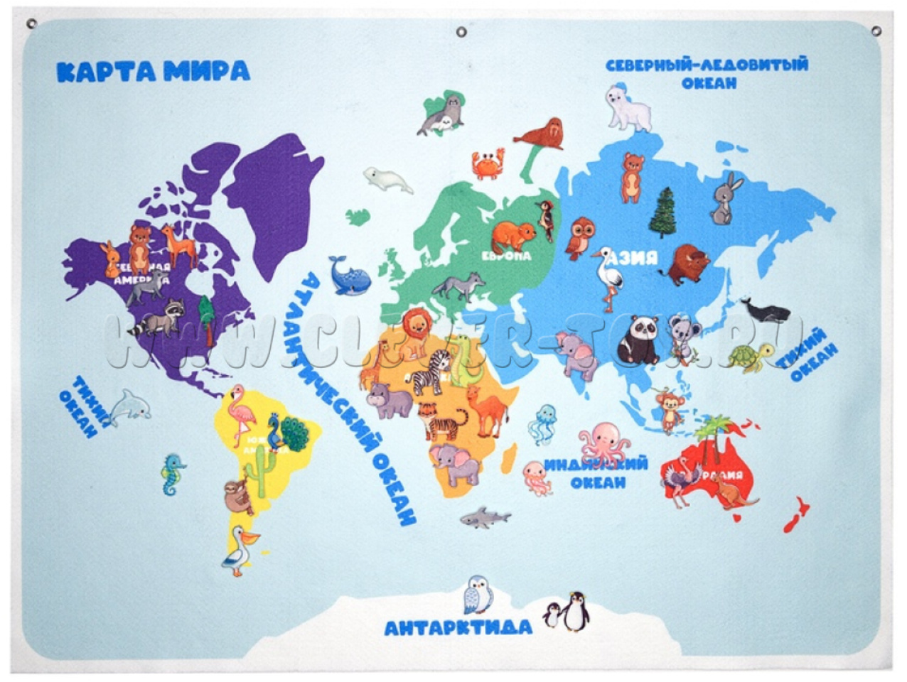 1. Знакомство с понятиями карта мира: расскажите ребёнку про материки и океаны, покажите, где мы живём. Познакомьте с понятием «страна». Предложите малышу разместить съёмные элементы на игровом поле, поясняя их особенности и местоположение, или предложите ребёнку самостоятельно расположить объекты, задавая наводящие вопросы.