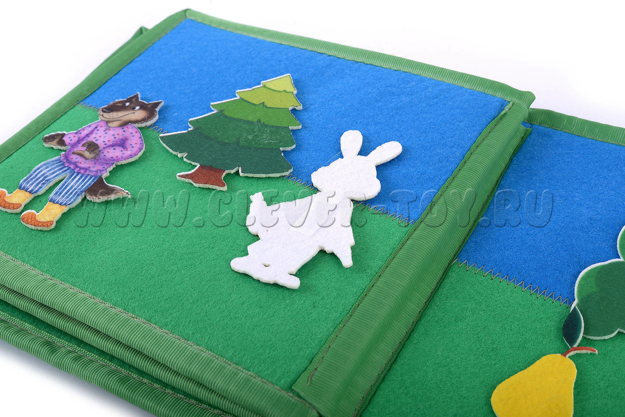 Авторская развивающая книга из ковролина с фигурами на липучках от российской компании «Lip-Lip» по мотивам русской народной сказки «Колобок». Ручная работа.