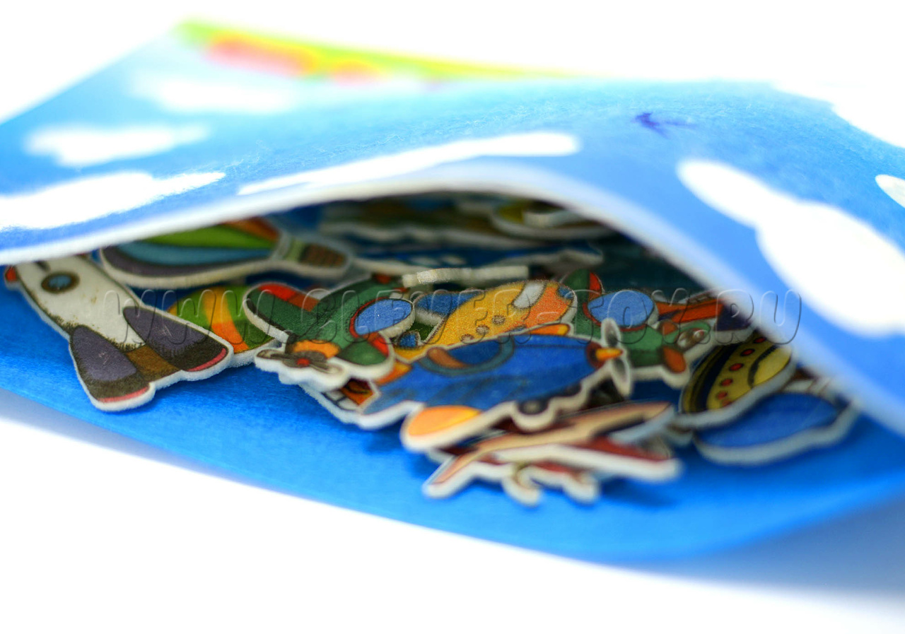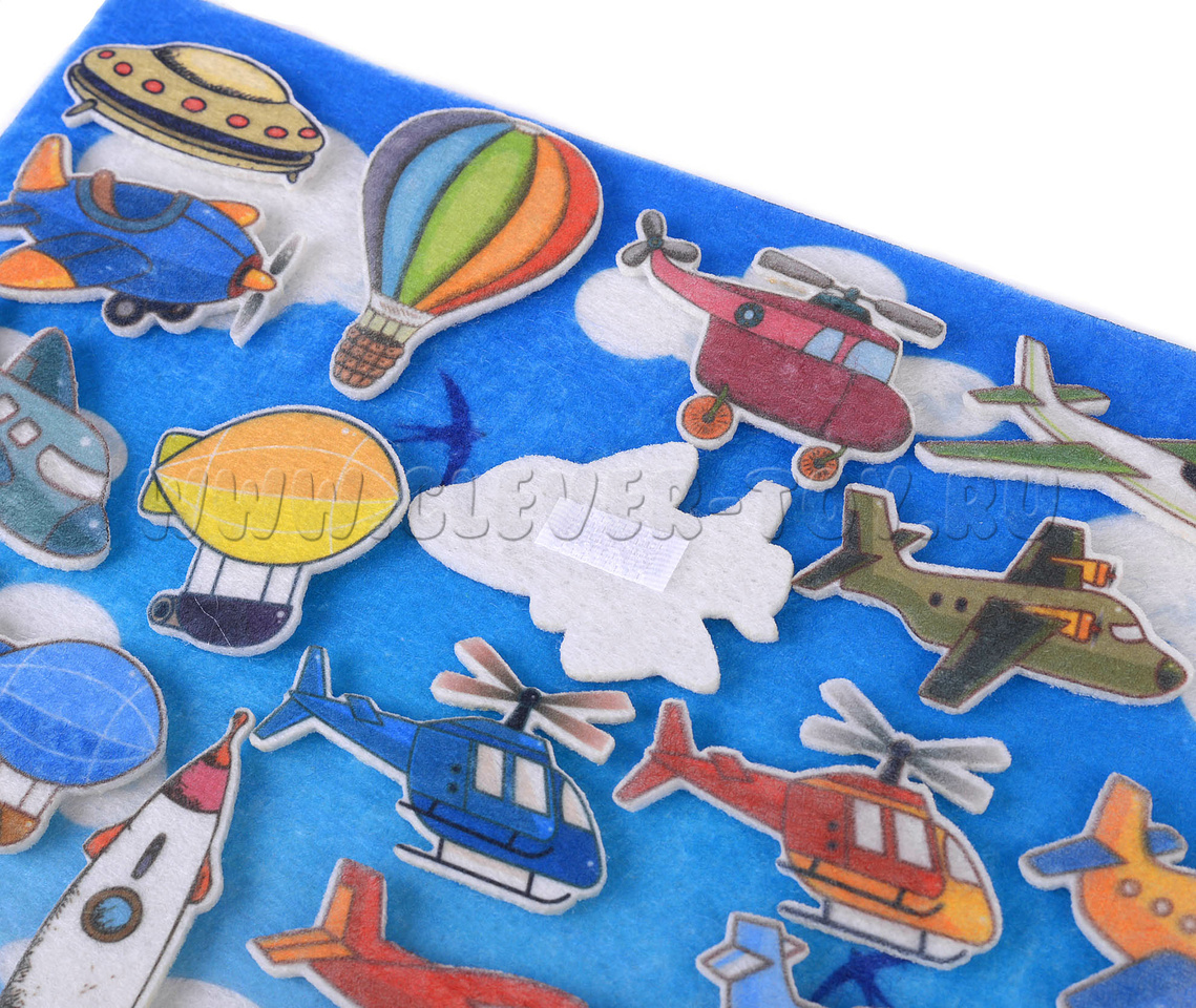 Липучки из фетра в форме самолетиков позволят малышу окунуться в мир фантазий. Игра-конструктор будет выглядеть как интересное приключение, в котором малыш будет главным героем и. Игра очень реалистичная, яркая и детализированная. Все детали идентичны оригинальным предметам. Материал не сомнется и не порвется во время игры, а многоразовые липучки позволят не ограничиваться в своих фантазиях.