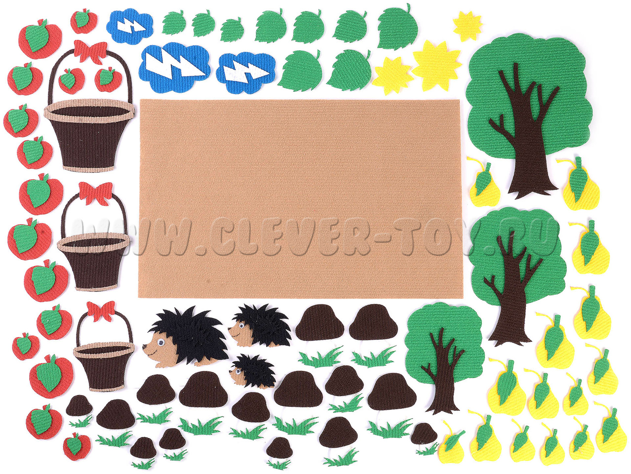 - дерево, солнышко, тучка с молнией, корзинка, ёжик маленького, среднего и большого размера (по три шт. каждого вида);