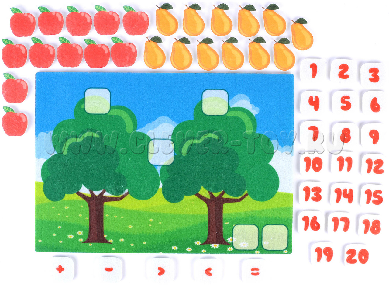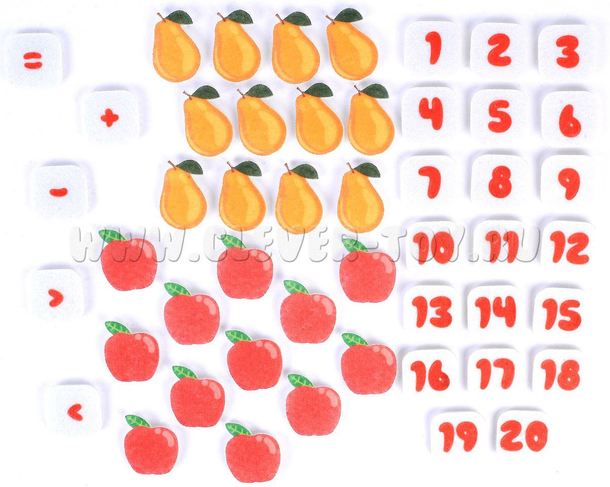 Данный набор поможет ребенку научиться выполнять простейшие арифметические действия. Складывать вычитать, сравнивать, считать до 20.