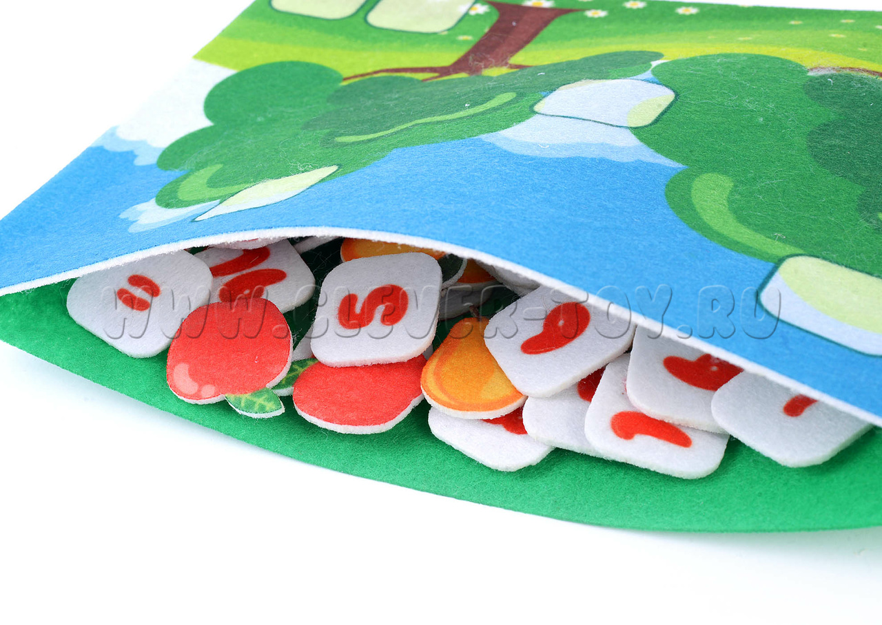 Игра-конструктор “Учимся считать” сделана из фетра, поэтому она мягкая и долговечная. А еще сзади у каждой фигурки есть липучка, с помощью которой можно располагать элементы на игровом поле.