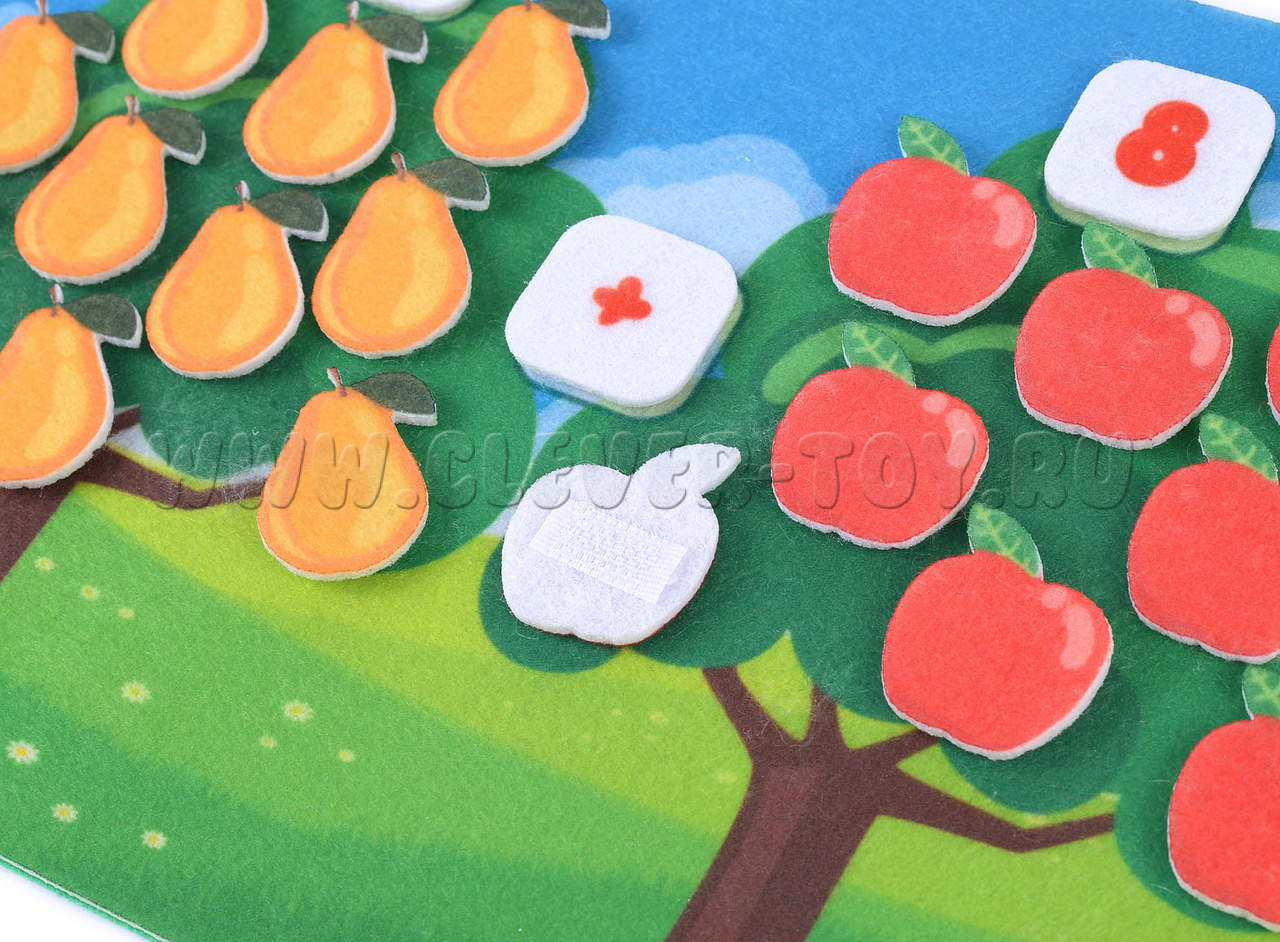 Все это благодаря множеству фигурок яблок и груш, а также элементам с математическими символами.