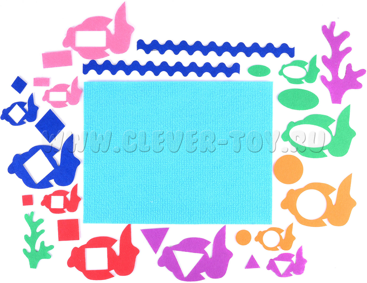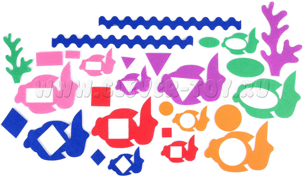 - Фигурки: рыбки, геометрические фигуры, волны и водоросли (28 шт.).