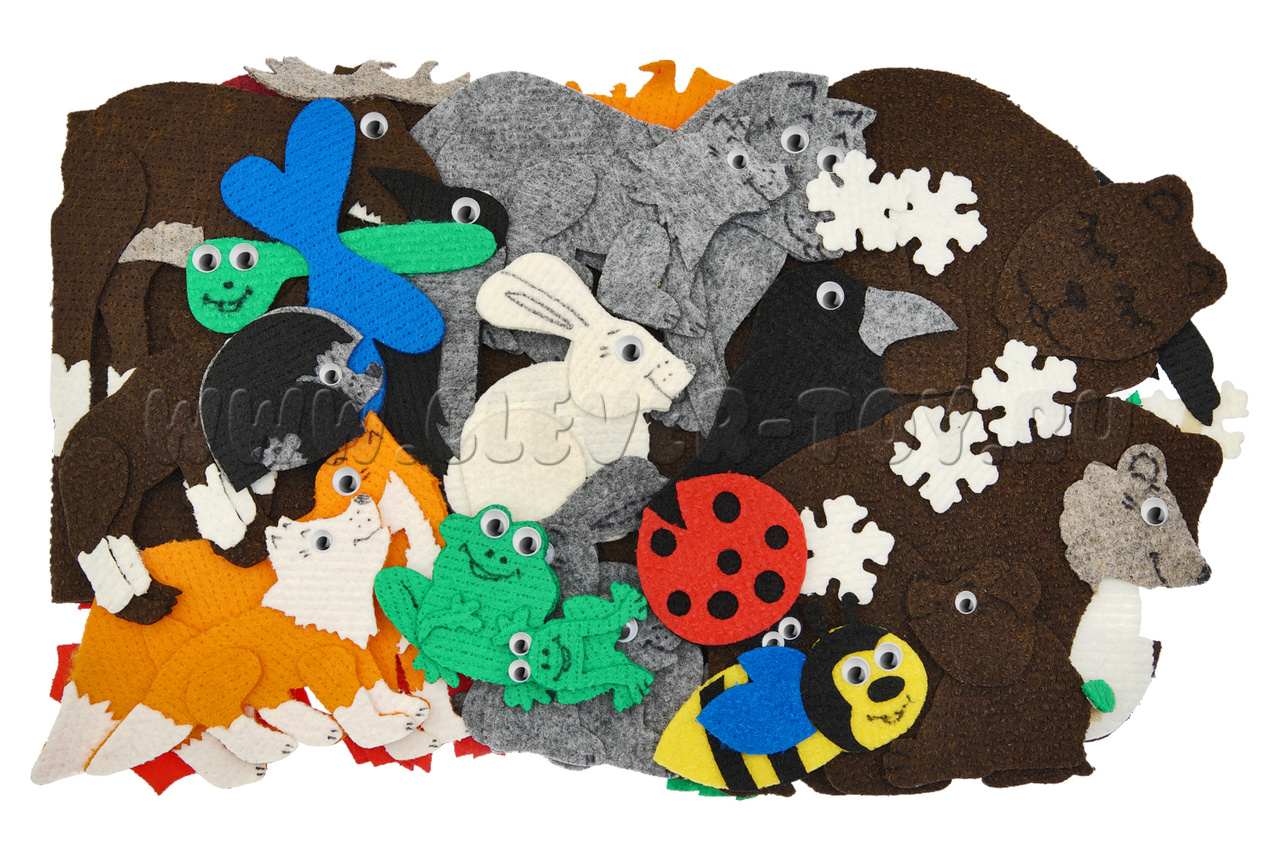 • звери и их детёныши - ёж, ежёнок, волк, волчонок, белка, бельчонок, лягушка, лягушонок, лось, лосёнок, лиса, лисёнок, белый заяц, серый заяц, зайчонок, медведь, медвежонок, медведь в спячке;