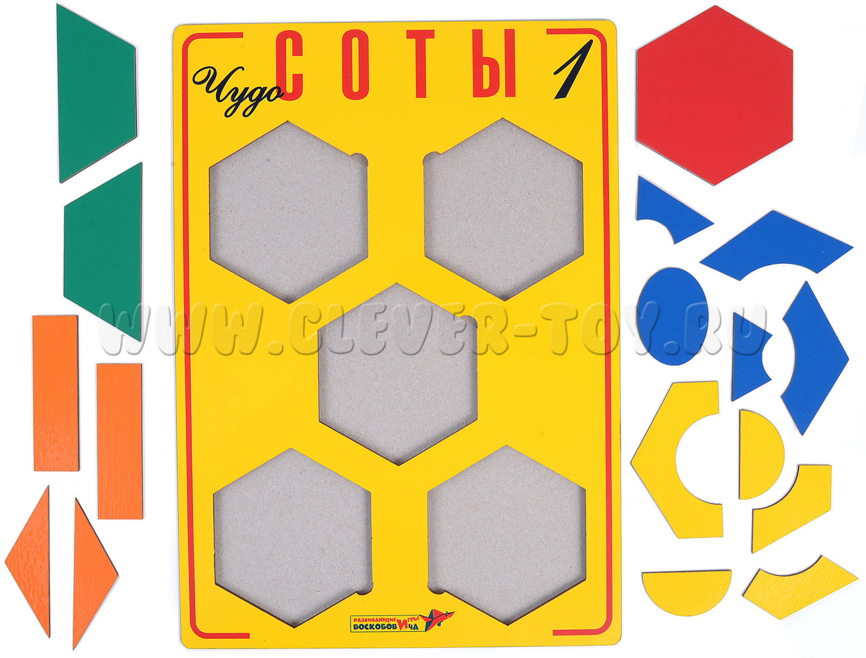 Плоскостной конструктор для раннего развития детей. «Чудо-соты» легко превращаются в различные фигуры и оригинальные предметные силуэты: человечки, предметы одежды, технику, растения, домики, зверей и т.д. В «Чудо-сотах» заложены бесконечные возможности для творчества.