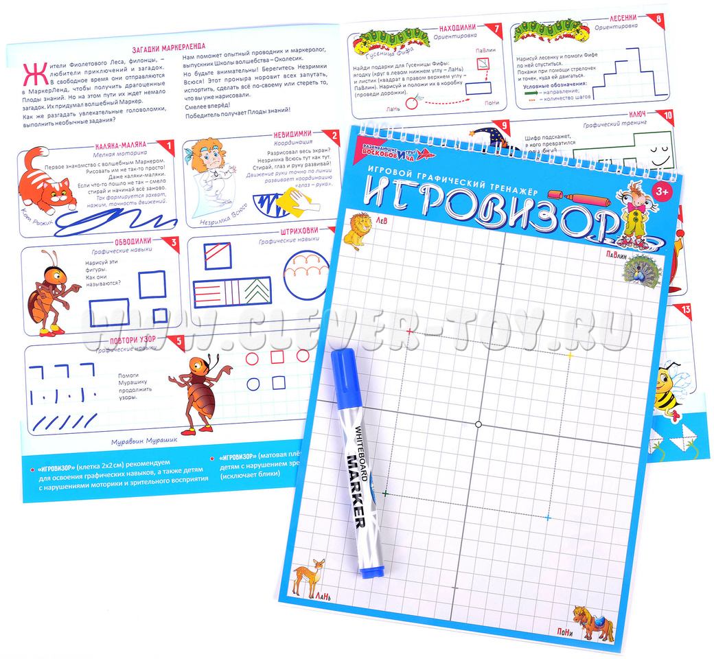 Графический тренажёр «Игровизор» - это специальным образом расчерченный лист бумаги, маркер на водной основе для всестороннего развития детей дошкольного возраста.