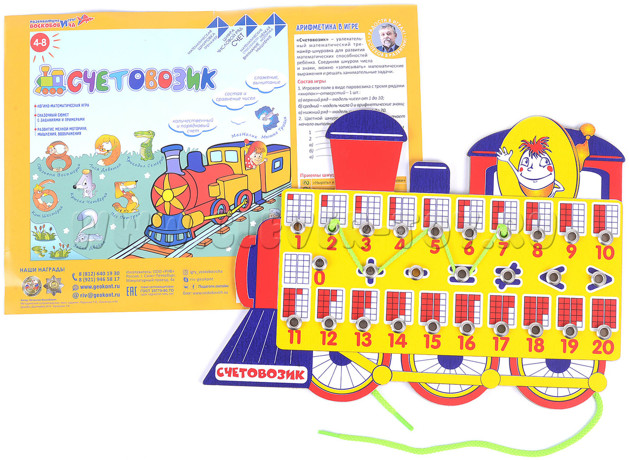 Перед вами уникальное игровое пособие, обладающее волшебными свойствами. Яркий деревянный счетовозик с шнурком и кнопками способен решать примеры, сравнивать числа, а главное – легко и весело изучать математику!