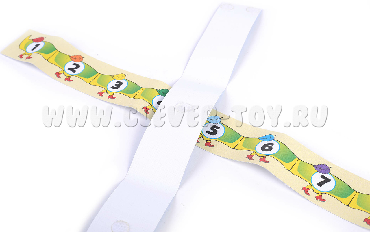 Две цветные полоски с делениями (баннерная ткань 42 х 3,3 см и 45 х 3,3 см, крепление – липучка) с делениями, соответствующими «МиниЛарчику» и числовым рядом от 1 до 10.