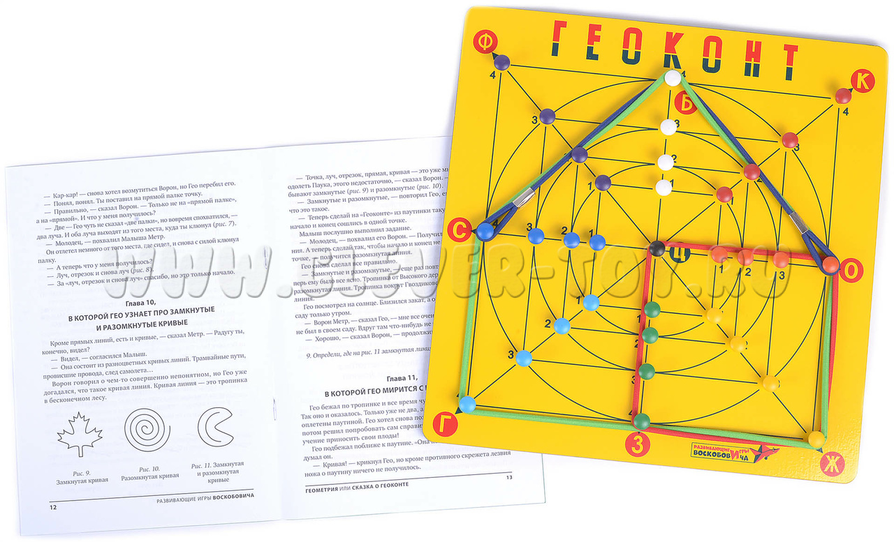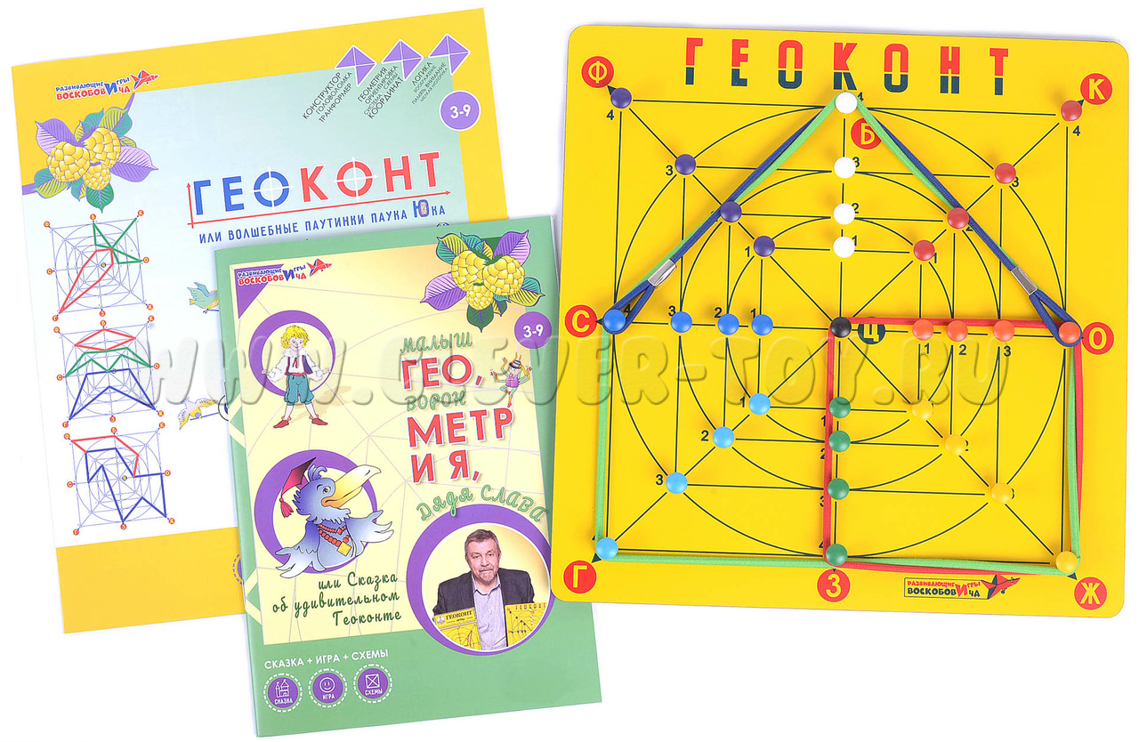 Авторское игровое пособие от фирмы «Развивающие игры Воскобовича» - одно из самых популярных среди детей, родителей и педагогов. С помощью игры «Геоконт» происходит развитие умений наблюдать и сравнивать, сопоставлять и анализировать, делать простейшие обобщения и интерпретировать их.