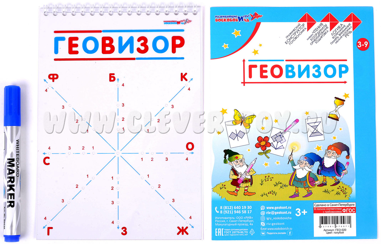 • «Геовизор» - альбом с прозрачным экраном, размеченным координатной сеткой с точками (отверстия экрана) и ламинированной подложкой;