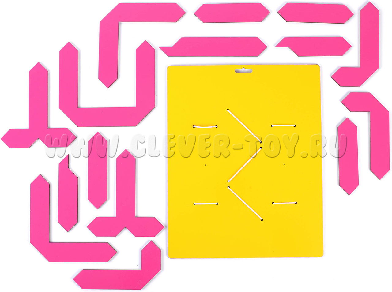- 15 деревянных элементов разной формы - «стрелочки» 4 шт., «уголки» 2 шт., «воротики» 1 шт., «клюшки» 3 шт., «лапки» 2 шт., «совочки» (большой и маленький) 3 шт.