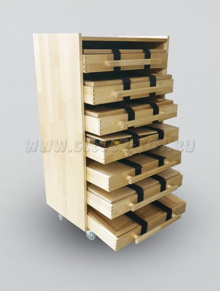 - Удобное хранение: мобильный стеллаж на колёсах с выдвижными ящиками-органайзерами.