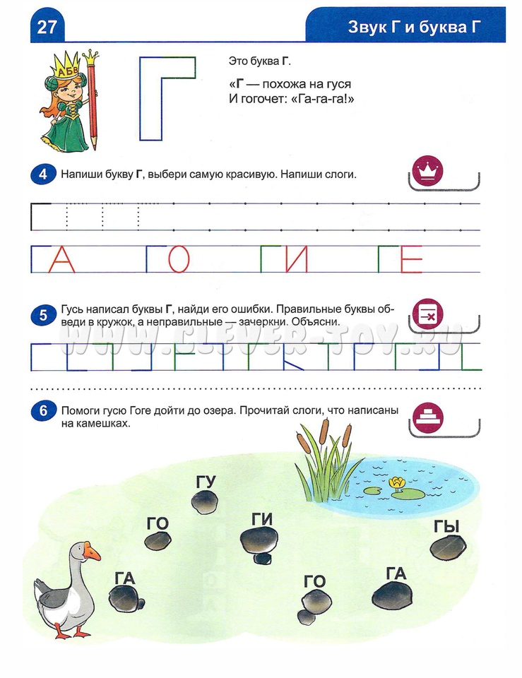 Дети постепенно осваивают операции звукового и слогового анализа и синтеза, понятия "звуки", "слоги", "слова", знакомятся с характеристиками звуков. Предложен особый порядок изучения букв и звуков, который учитывает следующее правило: нельзя давать графический образ буквы и упражнения со звуком, если ребёнок неправильно его произносит.