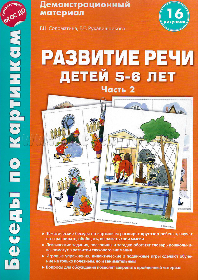 Тематические беседы по картинкам расширят кругозор ребенка, научат его сравнивать, обобщать, выражать свои мысли. Лексические задания, пословицы и загадки обогатят словарь дошкольника, помогут в развитии слухового внимания. Игровые упражнения, дидактические и подвижные игры сделают обучение не только полезным, но и занимательным.
