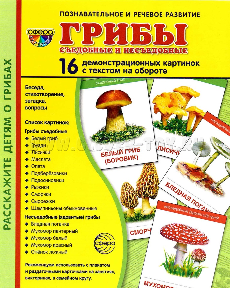 16 демонстрационных картинок для познавательного и речевого развития. На обороте каждой предметной картинки - описание, стихотворение, загадка, вопросы для ребёнка, название на русском и английском языках.