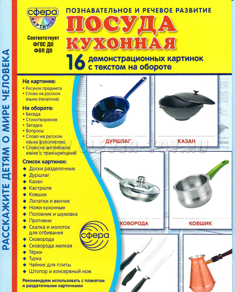 Демонстрационные картинки СУПЕР. Посуда кухонная (16 шт.) в папке