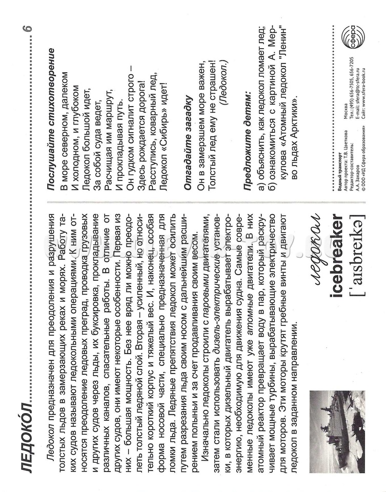 На лицевой стороне каждой карточки дается цветное изображение, на обратной - подробное описание, из которого дети узнают немало интересного о различных судах. Для лучшего закрепления материала представлены оригинальные стихотворения и загадки по теме, а также задания, которые ребенок может выполнить самостоятельно или с помощью взрослого. Комплект подходит для индивидуальной и групповой работы, может использоваться на тематических вечерах и викторинах, посвященных водному транспорту.