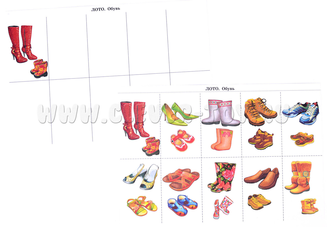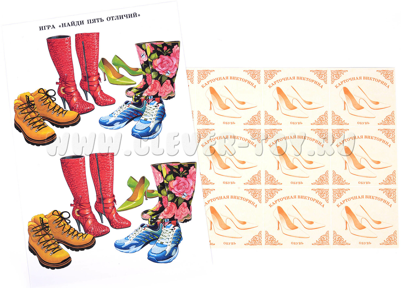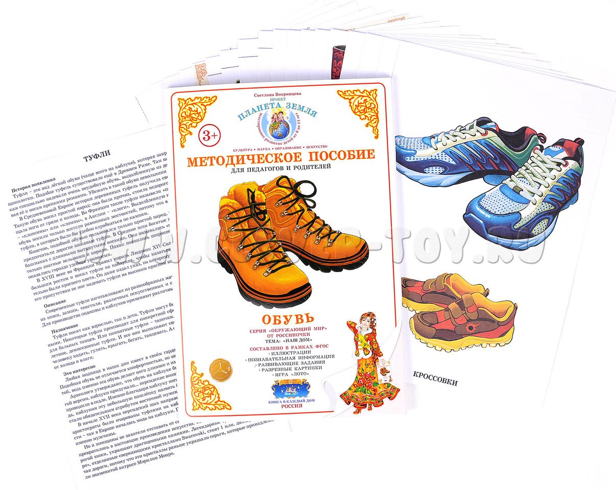 • 10 изображений различных видов обуви, на обороте - краткая историческая справка, интересные факты, описание, назначение;