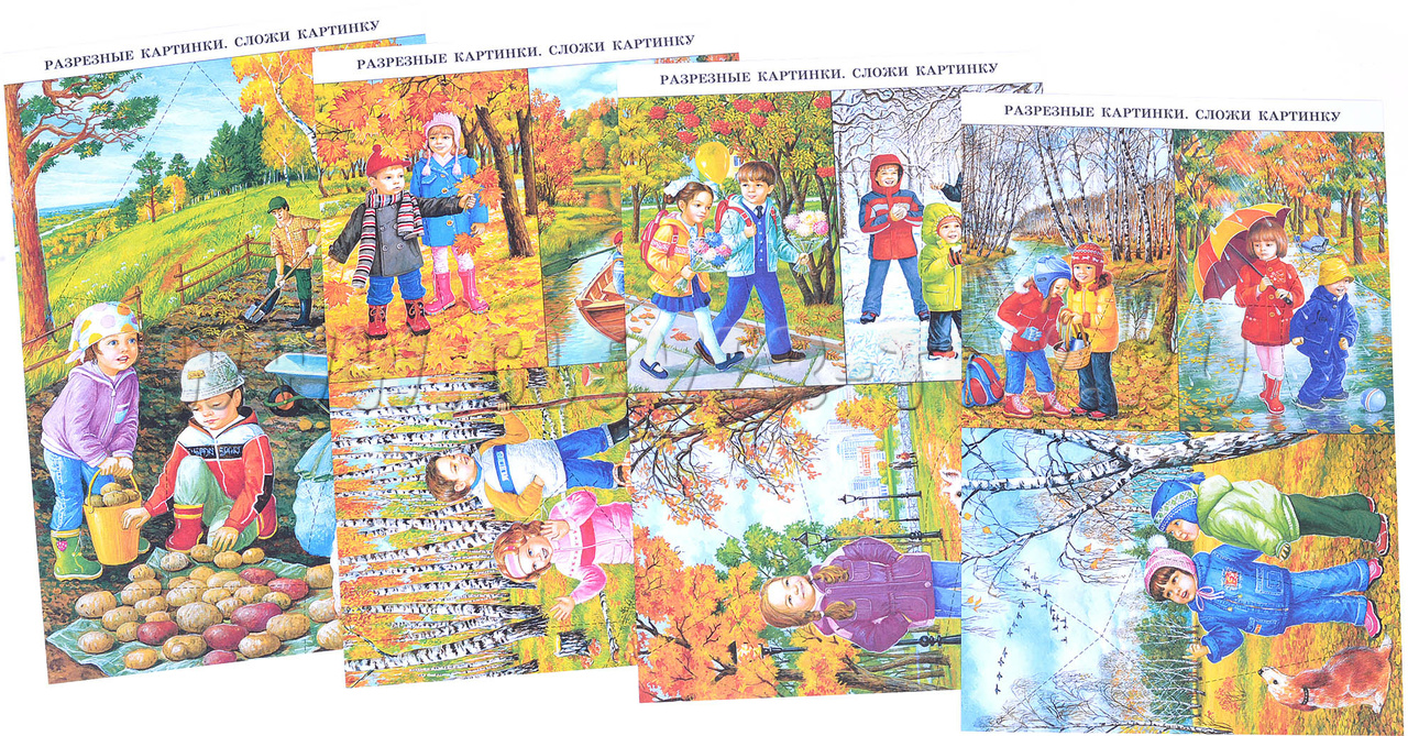 • 10 разрезных картинок (для игры "сложи картинку") на 4 листах А4;