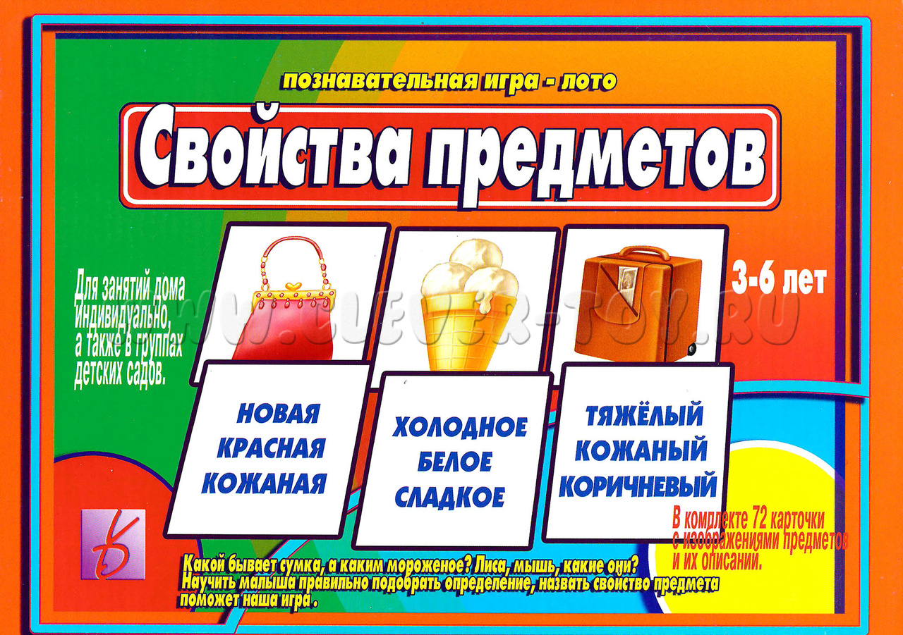 Развивающая игра-лото "Свойства предметов" подойдет для занятий с детьми как младшего, так и старшего дошкольного возраста и поможет ребенку в: