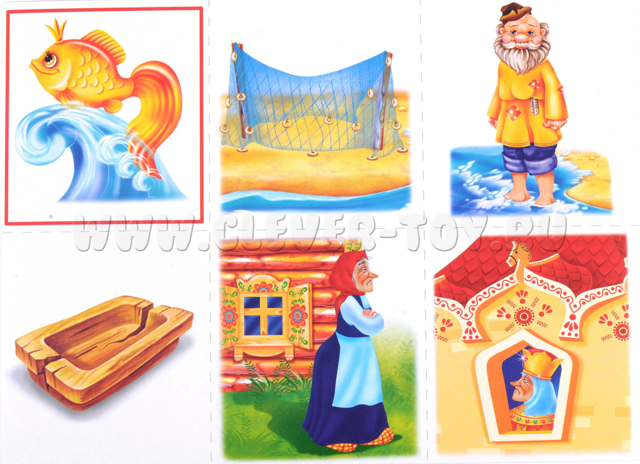 Перед началом игры необходимо разрезать карты по пунктирным линиям, чтобы получилось 72 карточки. Затем дети получают равное количество карточек с красными рамками. Ведущий поочерёдно показывает остальные карточки, а дети должны собрать каждую свою сказку. Когда шесть сказок будут собраны, игроки кратко рассказывают сюжет своей сказки.