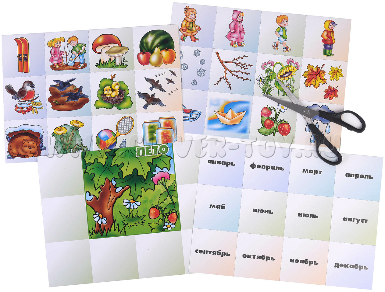 Познавательная игра-лото "Времена года" познакомит малышей с характерными особенностями каждого из 4-х времен года, месяцами и их названиями. Занятия с игрой в увлекательной легкой форме помогут ребенку в развитии: