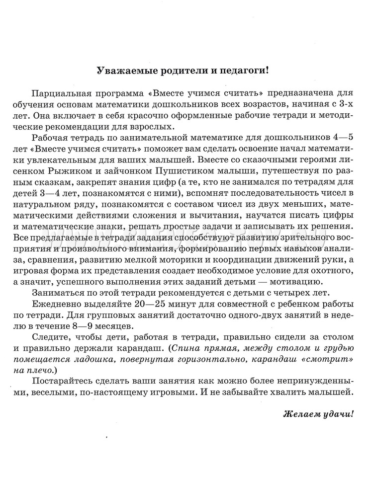Тетрадь предназначена для индивидуальных (20-25 минут ежедневно) и групповых занятий с младшими дошкольниками (одно-два занятия в неделю). Может быть использована как в группе детского сада, так и при занятиях дома.