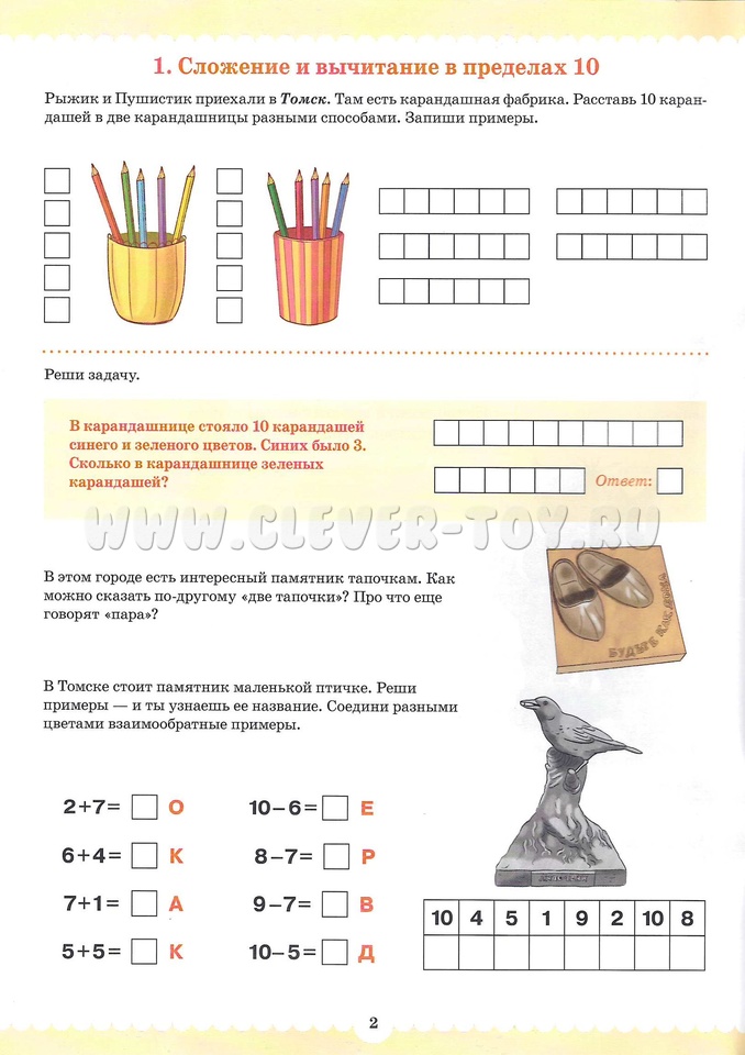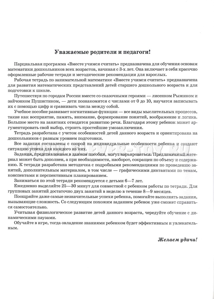 "Вместе учимся считать" – это не просто набор заданий, а настоящее путешествие для ребенка. Лисенок Рыжик и зайчонок Пушистик проедут вместе с ребенком по городам России, и вместе будут учиться считать.