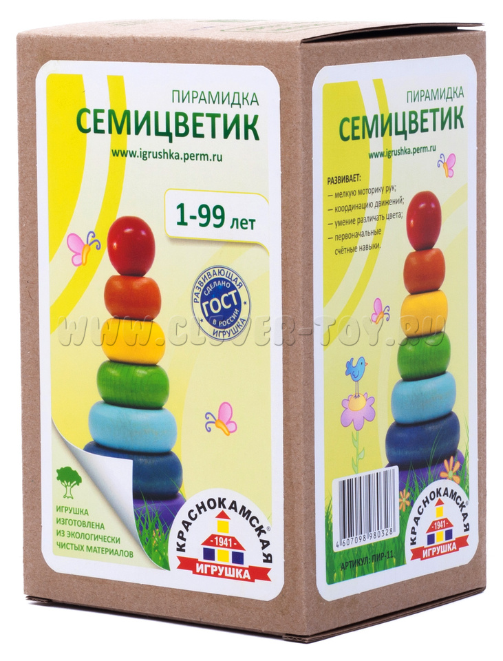 Экологически чистая, деревянная пирамидка "Семицветик " станет радостным подарком для любознательного ребенка!