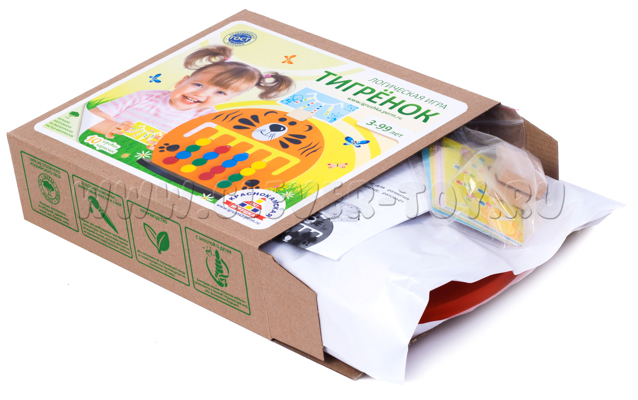 С "Тигренком" ваш ребенок в игровой форме и с большим интересом научится различать цвета, считать до 16, станет более спокойным и усидчивым, научится выполнять задание по образцу и разовьет воображение!