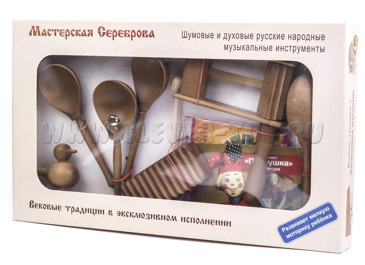 Народные музыкальные инструменты не только познакомят детей с историей русского народа, но и помогут прикоснуться к славянской культуре. Мастерская Сереброва славится не только отдельными музыкальными инструментами, но и чудесными музыкальными комплектами. Инструменты упакованы в картонные коробки и надежно закреплены для транспортировки. Русские народные инструменты подойдут как для семейного музицирования, так и для дошкольных образовательных организаций. "Петрушка" подойдет для людей без специального музыкального образования.