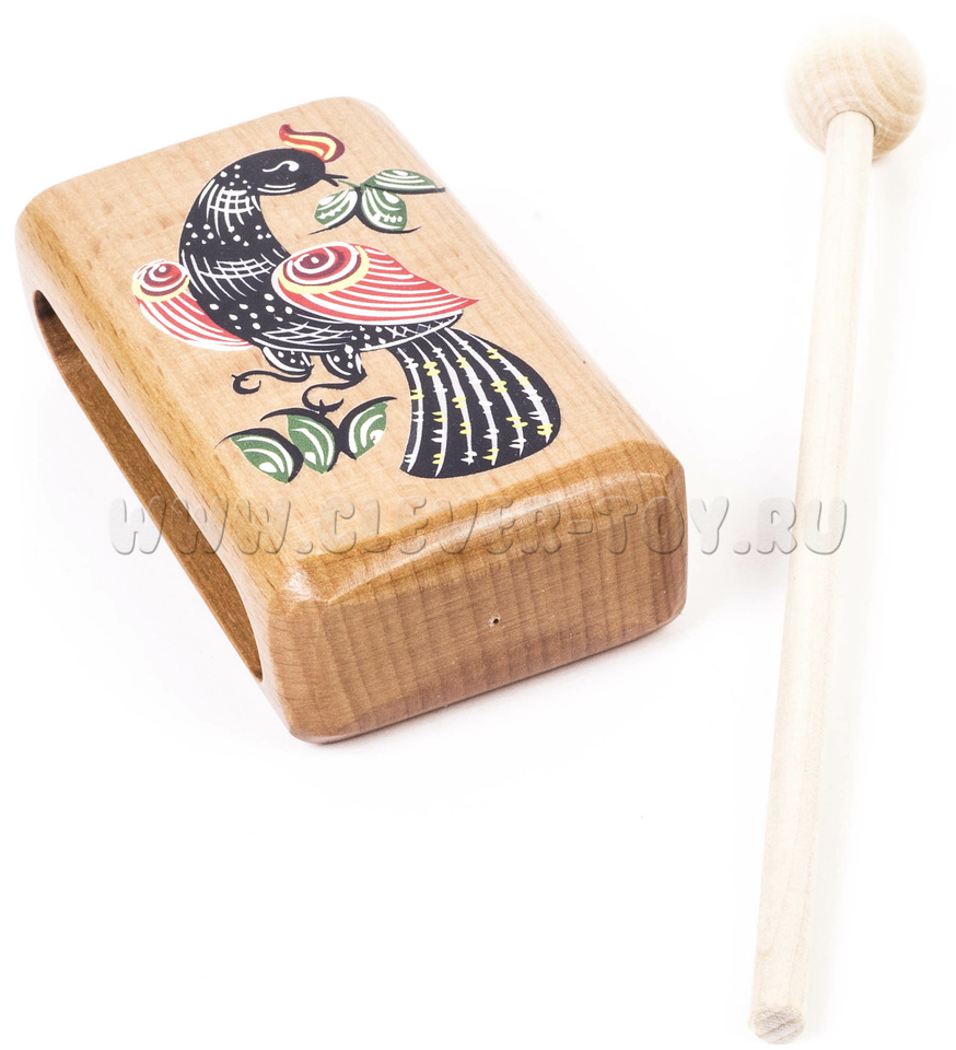 Представляет собой деревянный брус 30х50х90 мм. Музыкальный инструмент комплектуется ударной палочкой. Материал: бук.
