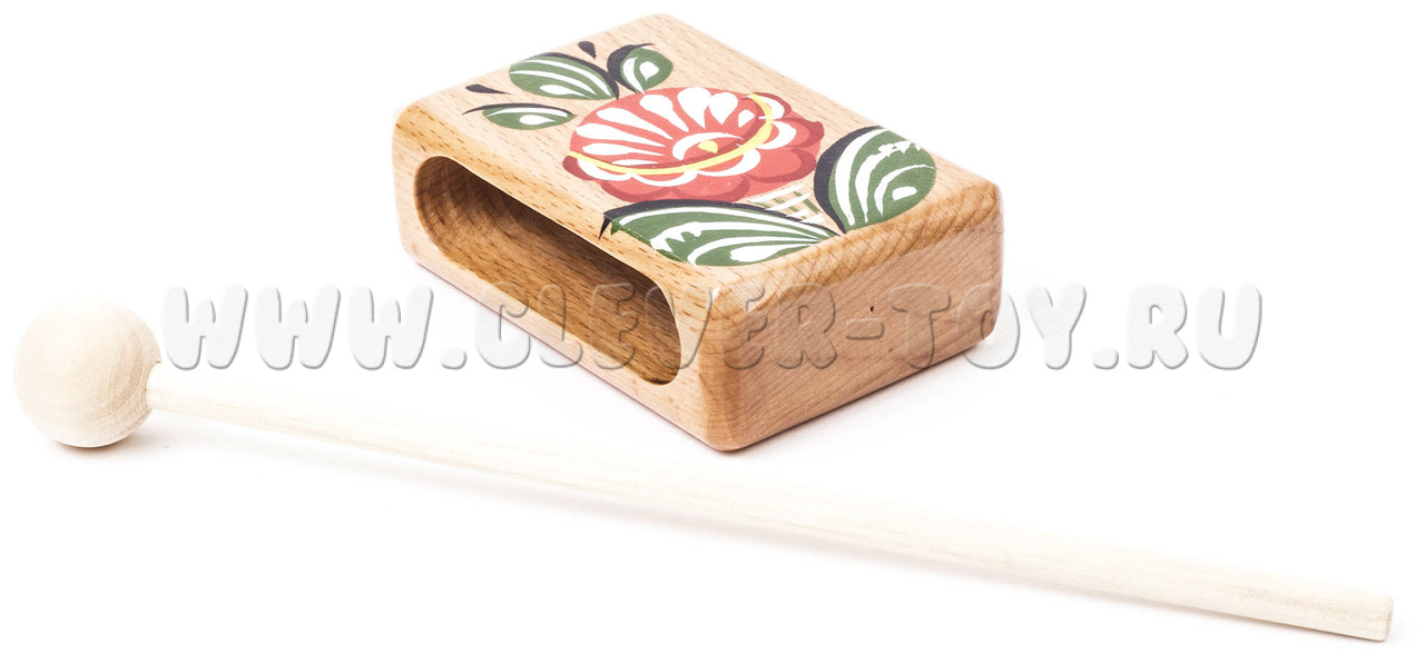 Представляет собой деревянный брус 30х50х80 мм. Музыкальный инструмент комплектуется ударной палочкой. Материал: бук.