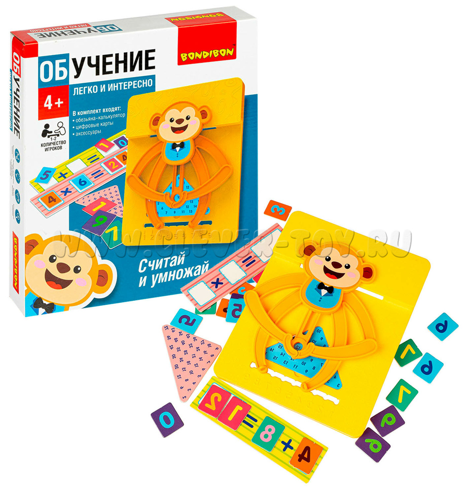 Настольная обучающая игра «Считай и умножай» Обезьянка из серии обучение легко и интересно поможет вашим детям разобраться в мире цифр. Игра предназначена для обучения счету детей дошкольного возраста. С Обучающей игрой «Считай и умножай» проведите увлекательный урок арифметики. Веселая обезьянка поможет вам проверить правильное решение.