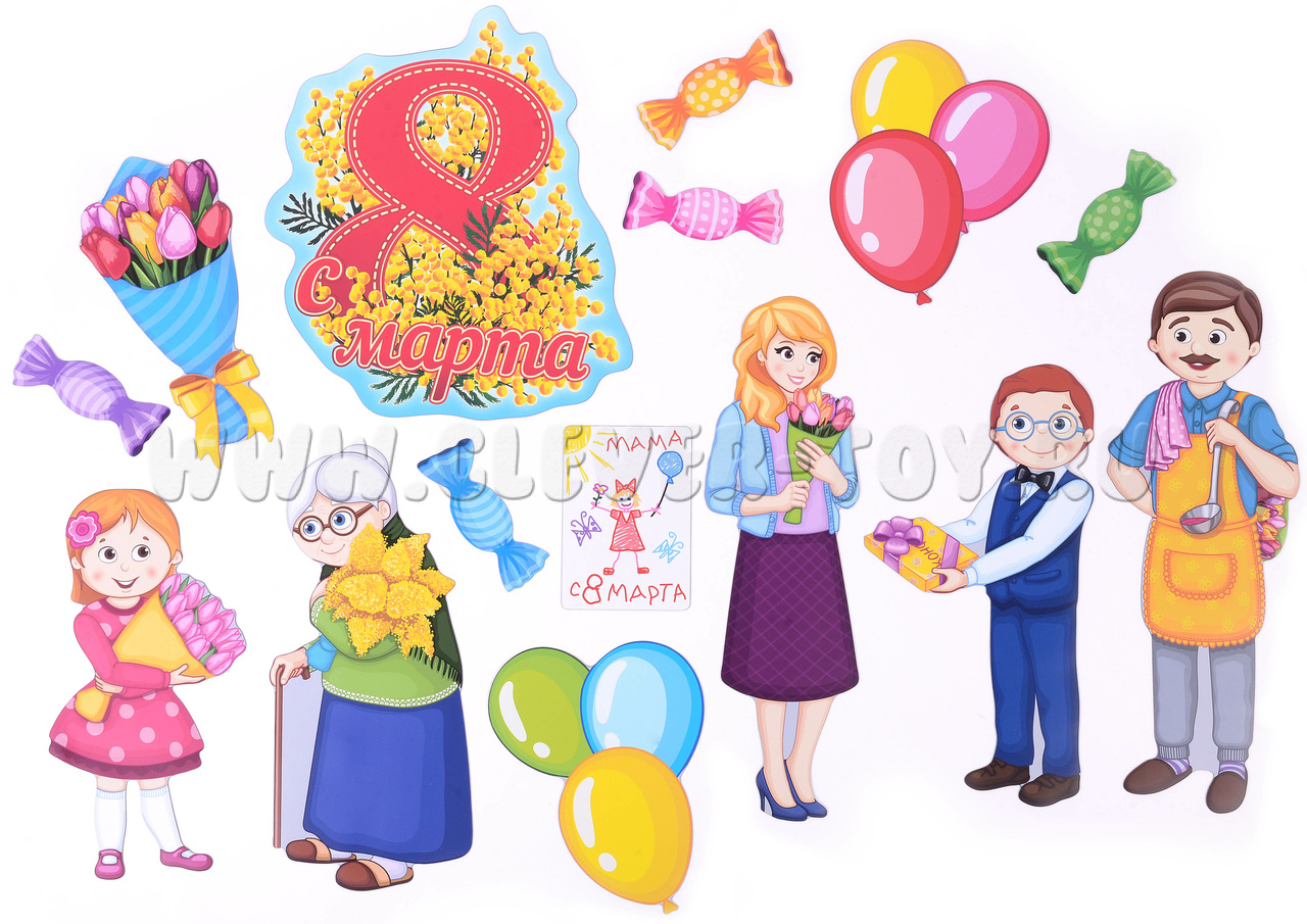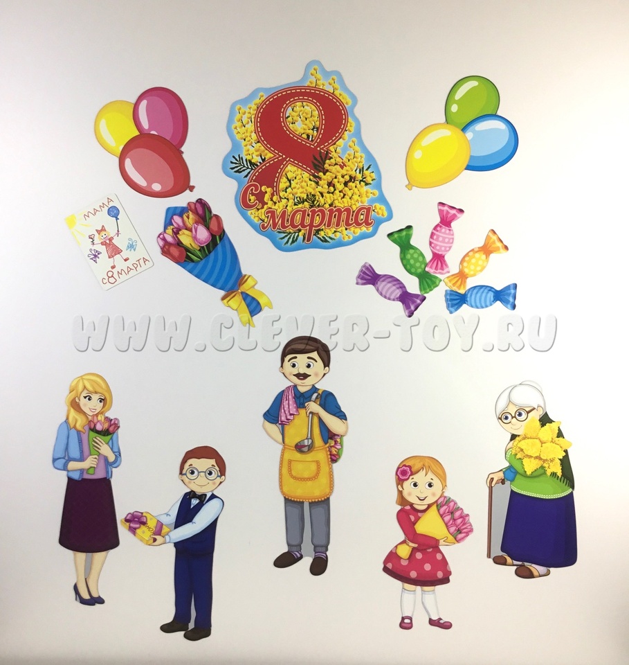 Набор магнитных карточек "С Днём 8 марта"