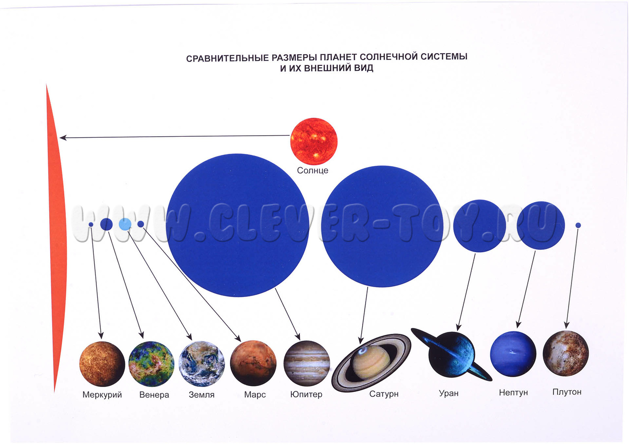 1. Сначала мы предлагаем ребятам представить себе в сравнении пропорции Солнца и планет. Правда, на стандартной школьной доске помещается только маленький кусочек нашей звезды, но от этого картинка становится еще более наглядной.